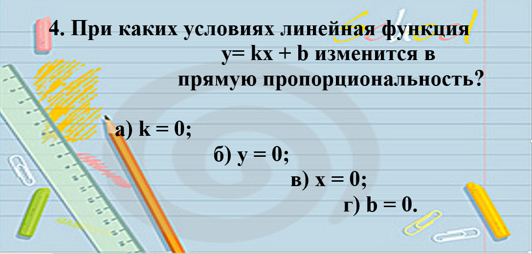 — При каком условии линейная функция становиться прямой пропорциональностью?