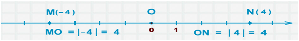 Модуль числа 4 равен 4 , так как точка N удалена от начала отсчета на четыре единичных отрезка. Пишут: | 4 | = 4 .