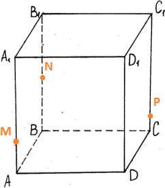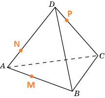 Построить сечение тетраэдра, проходящее через точки M, N, P.