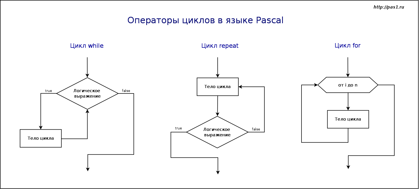 1) Рассмотрение блок-схем циклических конструкций.