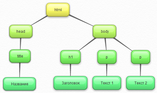 <html> <head> <title>Название</title> </head> <body> <h1>Заголовок</h1> <p>Текст 1</p> <p>Текст 2</p> </body> </html>
