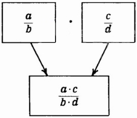 - числитель первой дроби умножить на числитель второй дроби и их произведение записать в числитель новой дроби;