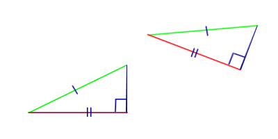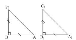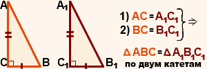 Теорема. Если два катета одного прямоугольного треугольника соответственно равны двум катетам другого прямоугольного треугольника, то такие треугольники равны.