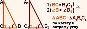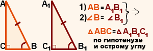 Признак равенства прямоугольных треугольников по гипотенузе и острому углу